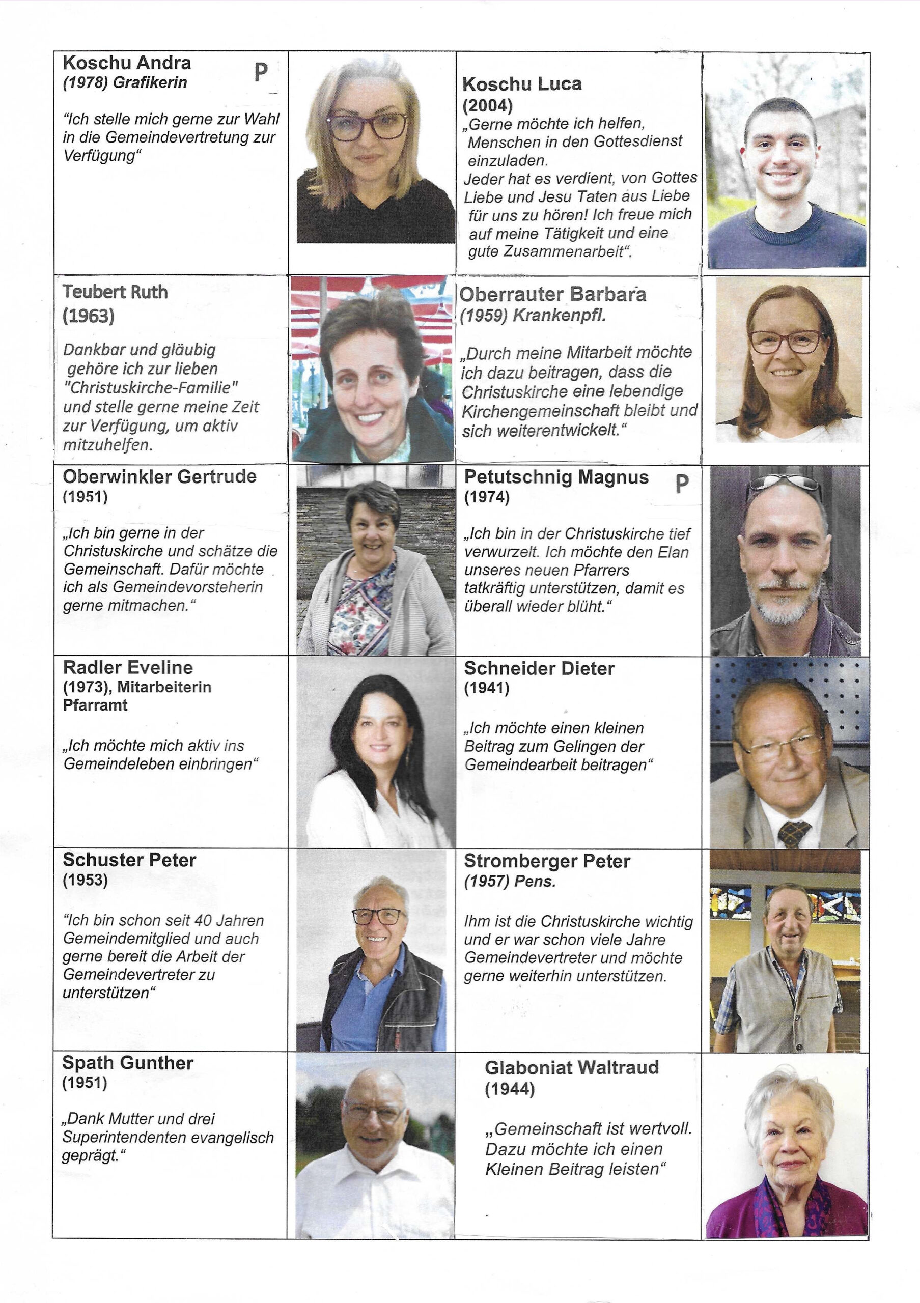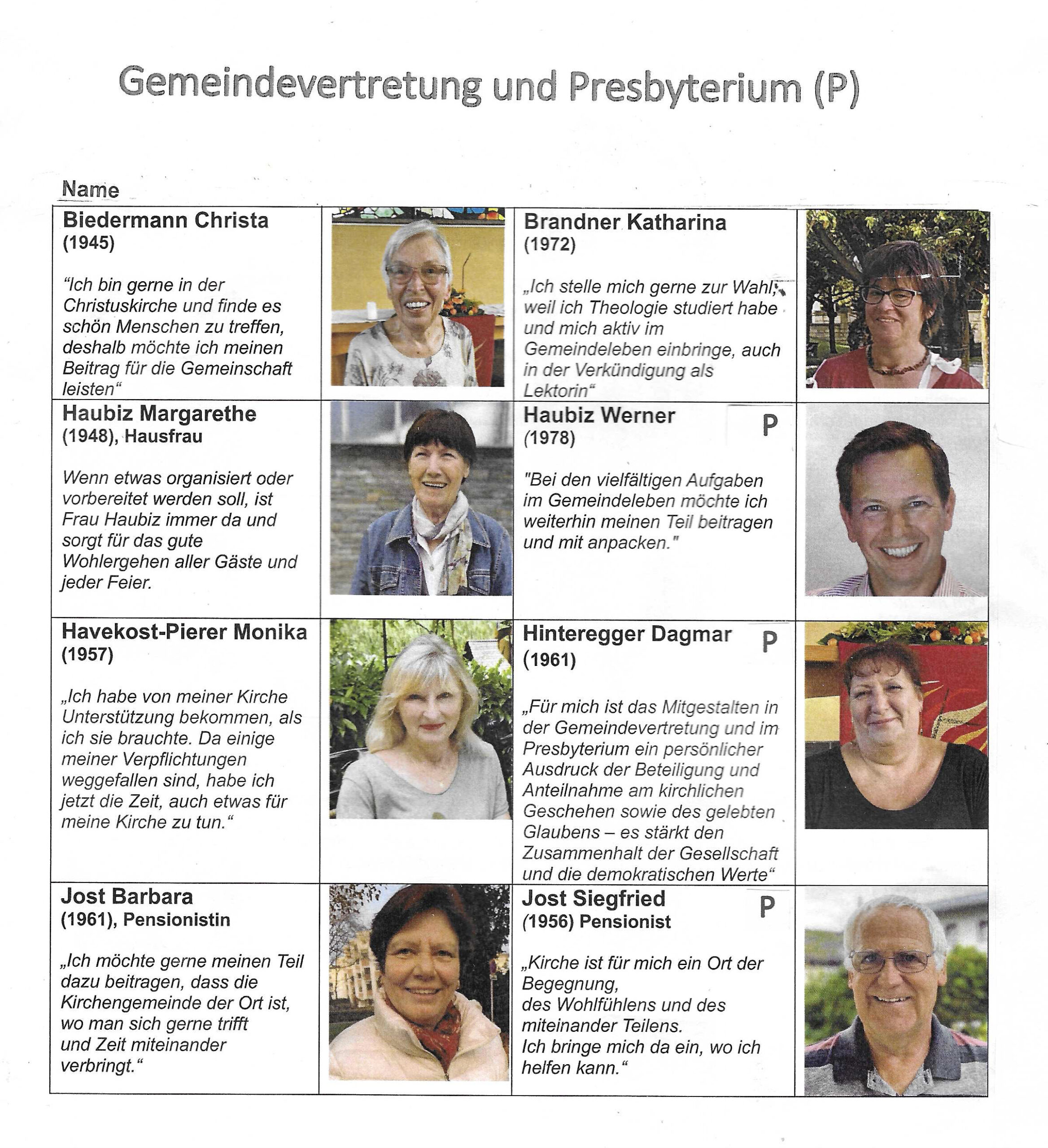 Die Gemeindevertretung und das Presbyterium beraten mit dem Pfarrer/der Pfarrerin zusammen die Entwicklung des Gemeindelebens und die finanziellen Angelegenheiten. Mitglieder beider Gremien werden für sechs Jahre gewählt.